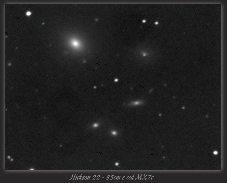 | Consiste di tre galassie abbastanza vicine, le pių a nord nell'immagini, ed una coppia pių debole con redshift maggiore. La galassia principale č catalogata anche come Ngc 1199 ed č ellittica. Le altre due del tripletto sono spirali. La seconda componente (tipo Sa) ha un alone molto diffuso ed una stella prossima al nucleo. Non si notano effetti mareali. | |